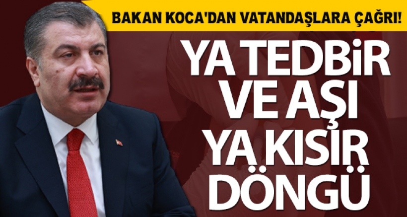 Sağlık Bakanı Fahrettin Koca, sosyal medya hesabından yaptığı paylaşımda ''Aşı ve tedbirlerle sağlanacak toplumsal bağışıklığın aksi, kısır döngüdür. Salgını bitirmek için tedbirlere uyun, aşınızı olun. Ya tedbir ve aşı, ya kısır döngü'' dedi.