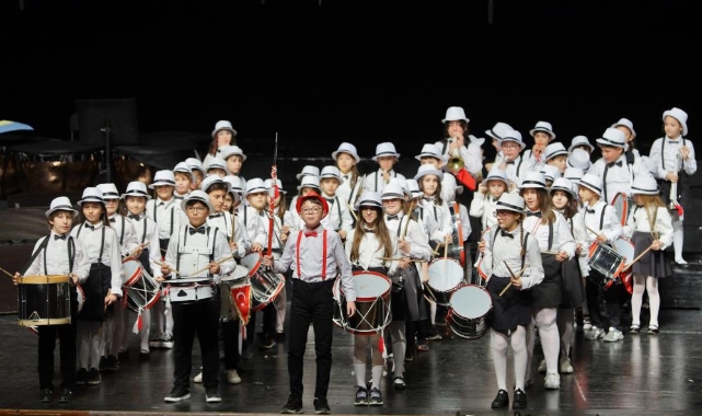 Türk bayraklarıyla sahneye çıkan minik sanatçılar, repertuvarlarında yer alan eserleri büyük bir uyum ve başarıyla seslendirdi. Farklı yaş gruplarından çocukların oluşturduğu orkestra ve koro, sahnedeki enerjileri ve disiplinli performanslarıyla izleyicilerden uzun süre alkış aldı.