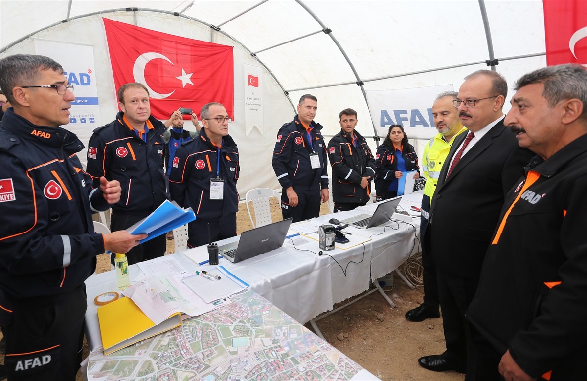 AFAD koordinesinde jandarma, polis, sağlık ve sivil toplum kuruluşlarının katılımıyla geniş çaplı deprem tatbikatı gerçekleştirildi. 6 büyüklüğündeki bir depremi baz alarak tatbikat gerçekleştiren ekipler, Nilüfer ilçesi hastane alanında yüzlerce çadırdan ve ekipten oluşan çadır kent kurdu. Depremzedelerin afet sonrası barınma, yiyecek ve sağlık hizmetlerinden yararlanacağı ve ilk müdahalenin yapılacağı çadır kentte ekipler de yerini aldı. Bin 500 personelin katıldığı tatbikatta ayrıca kimyasal ve biyolojik olaylara da müdahale için bir üst kuruldu. Yüzlerce arama kurtarma aracı, ekipmanlar ve AFAD koordinasyon tırı da bölgede yerini aldı. Tatbikat doğrultusunda acil toplanma yerleri belirlenerek, vatandaşlar bilgilendirildi.Tatbikatın gerçekleştiği alanı ziyaret eden Bursa Valisi Yakup Canbolat, ekiplerin görev aldığı çadırları tek tek gezerek bilgi aldı. Tatbikatın gece de süreceği belirtildi.