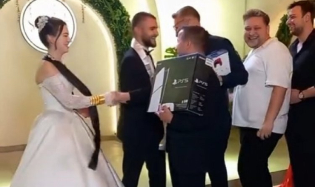 Bursa'da dünya evine giren çifte, damat ve gelinin arkadaşları oyun konsolu taktı. Bursa'da yaşanan ilginç düğün, takı kamerasına yansıdı. Dünya evine giren çifte, herkes sırayla takısını takmak için sıraya girdi. Kimi para, kimi altın takıp mutluluklar dilerken, bir grup genç ise taktığı takı ile dikkat çekti. Damat ve gelinin yakın arkadaşları kendi aralarında topladıkları para ile Playstation 5 satın aldı. Takı sırası onlara geldiğinde, dama oyun konsolunu, geline ise kolunu hediye etti. Fotoğraf çekinmeyi de ihmal etmeyen gençler, salondaki davetliler tarafından da büyük alkış topladı. Gençlerin yaptığı bu ilginç takı merasimi milyonlarca kişi tarafından izlendi. Herkesin yorumu ise “Misafirliğe gittiklerinde canları sıkılmasın diye önceden önlem almışlar” oldu.