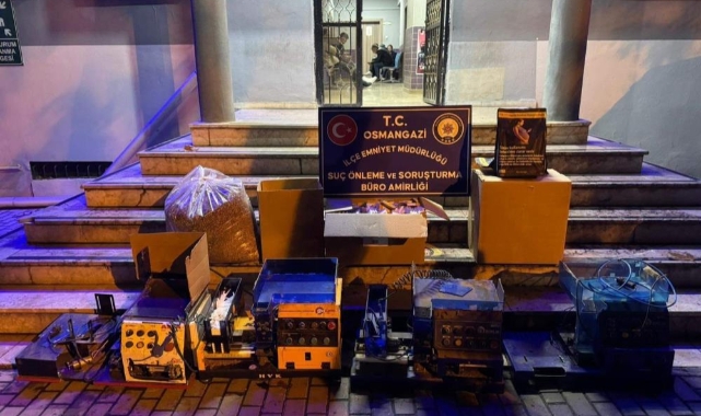 Bursa Emniyet Müdürlüğü ekipleri tarafından gerçekleştirilen operasyon kapsamında, iki ayrı iş yerine baskın düzenlendi. Baskınlarda sigara sarım makineleri, dolu makaronlar, kaçak sigaralar ve çeşitli tütün ürünleri ele geçirildi.Operasyonda ele geçirilen kaçak ürünler şöyle sıralandı: