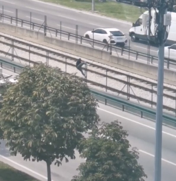 Olay, merkez Nilüfer ilçesi İhsaniye Mahallesi’nde meydana geldi. Edinilen bilgiye göre, ismi öğrenilemeyen bir kişi, yolun karşısına geçmek için akıl almaz bir yöntem seçti. Araçların yoğun olduğu İzmir Yolu Caddesi’nden karşıya geçti ve direkleri aşarak metro hattına girdi. Şahıs tekrar anayoldan karşıya geçti. Yaşanması muhtemel bir facia ise cep telefon kameralarına yansıdı.