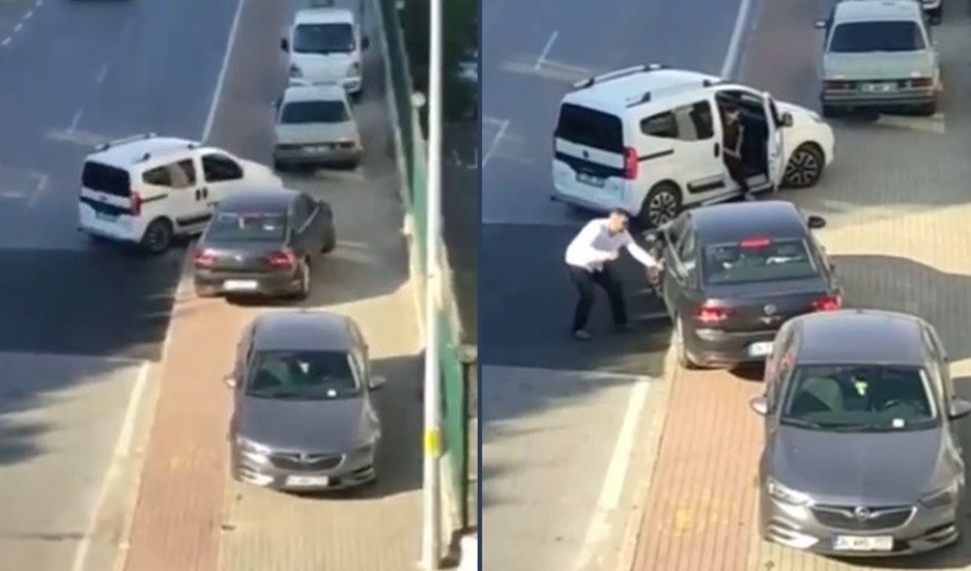 Bursa’da 2 sürücü arasında yol verme meselesi yüzünden tartışma çıktı. Sürücülerden biri tartıştığı sürücünün önüne kırdı. Ardından yanında taşıdığı tabancayı çıkararak tartıştığı sürücüyü ve kendisini uyaran başka bir vatandaşı tehdit etti. O anlar cep telefon kamerasına yansıdı.