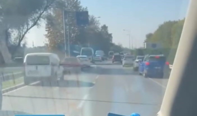 Bursa'da sürücülerin 'fermuar yöntemi'yle ambulansa yol vermesi kamerada