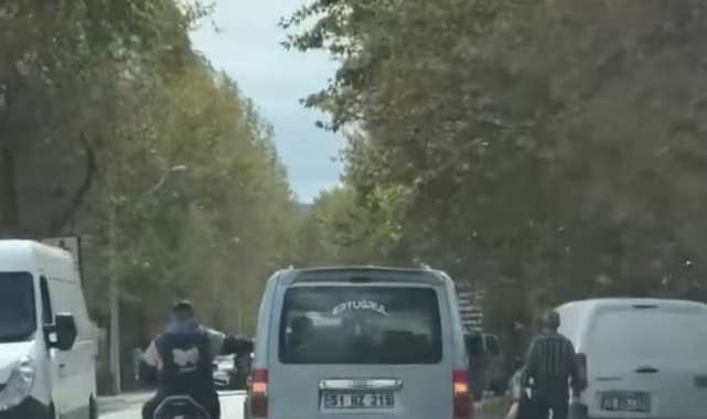 Bursa'da trafikte tehlikeli anlar kamerada: Sohbet etmek için seyir halindeki araca yaslandı