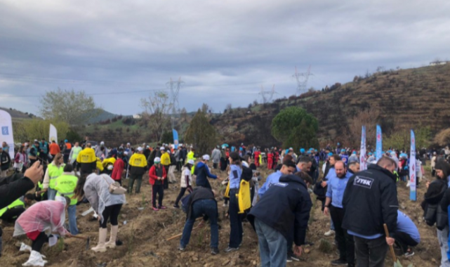 96 bin fidan dikildi. Tören, Gürsu ilçesi Karahıdır Mahallesi’nde, geçtiğimiz temmuz ayında çıkan yangında zarar gören bölgede yapıldı. Etkinliğe Bursa Valisi Erol Ayyıldız, milletvekilleri, belediye başkanları, BTSO Başkanı ve çok sayıda vatandaş katıldı.