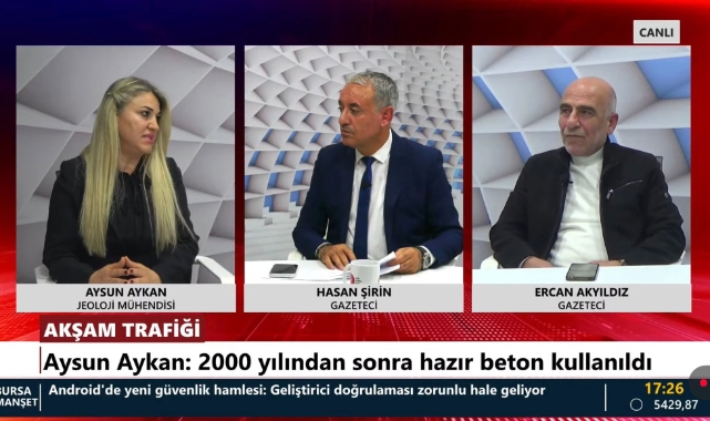 Jeoloji mühendisi Aykan, eski ve yeni binaların dayanıklılık farklarına dikkat çekti. 1975 ve 2019 deprem yönetmeliklerine göre yapılan binaların durumlarını kıyaslayan Aykan, "Yeni yapılmış binalar yönetmeliklere uygun olsa da yapı denetim mekanizmasındaki eksiklikler bazı sorunlara yol açabiliyor" ifadelerini kullandı. Ayrıca hazır beton ve zemin etütleri konusunda yapılan gelişmeleri anlattı.
