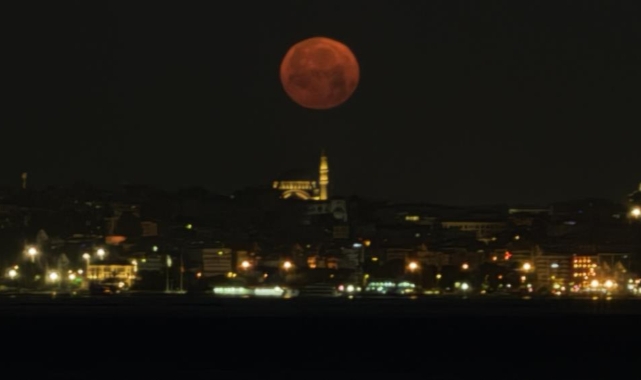 "Çilek Dolunayı" İstanbul Avrupa Yakası'ndan böyle görüntülendi