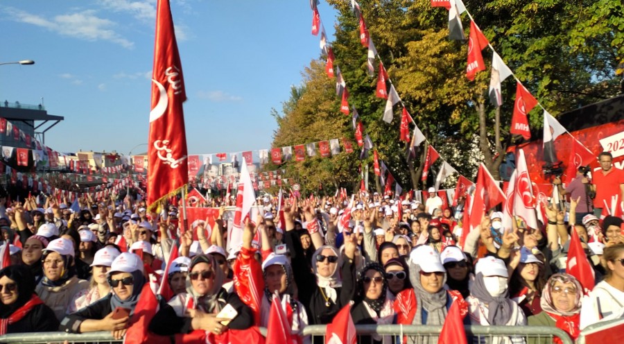 MHP Genel Başkanı Devlet Bahçeli, Bursa'da 2023'e Doğru: Aday Belli, Karar Net mitinginde konuştu.Bahçeli'nin açıklamalarından satır başları:Sivas'ta on binlerce vatan evladı bir araya geldi. Birilerinin uykuları kaçtı, kıskananların feleği şaştı. Türkiye'ye diş bileyen mihraklar kabusla tanıştı. Sokak röportajlarıyla Cumhur İttifakı'nı kötüleyenler, zillete methiye düzenler küçük dillerini yurttu. Türkiye düşmanlarına piyonluk yapan bir avuç devşirme istedi diye ülkümüzün kubbesi asla devrilmez.Parayı verenin düdüğünü çalan anket şirketleri, biz sizin ederinizi de cibilliyetinizi çok iyi biliriz.
