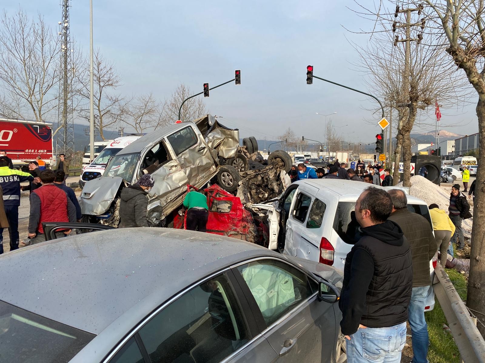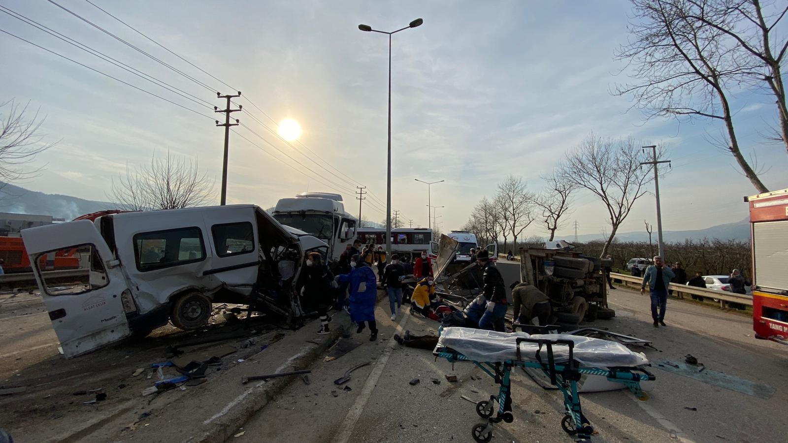 Kaza, Bursa-Ankara yolu üzeri Barakfakih mevkiinde 17.30 sıralarında meydana geldi. Edinilen bilgiye göre, İnegöl istikametinden gelen tır, freni patlayınca önündeki araçlara çarparak bariyerleri aşıp karşı şeride geçti. Tır ile karşı yönden gelen araçların çarpıştığı ve onlarca aracın karıştığı kazada tır, yaklaşık 50 metre sonra durabildi. Diğer araçların da hızla gelmesiyle anayol, savaş alanına döndü. Kazada 3 kişinin hayatını kaybettiği ve onlarca kişinin yaralandığı bilgisine ulaşılırken, olay yerine çok sayıda 112 Acil Servis ve kurtarma ekipleri sevk edildi.