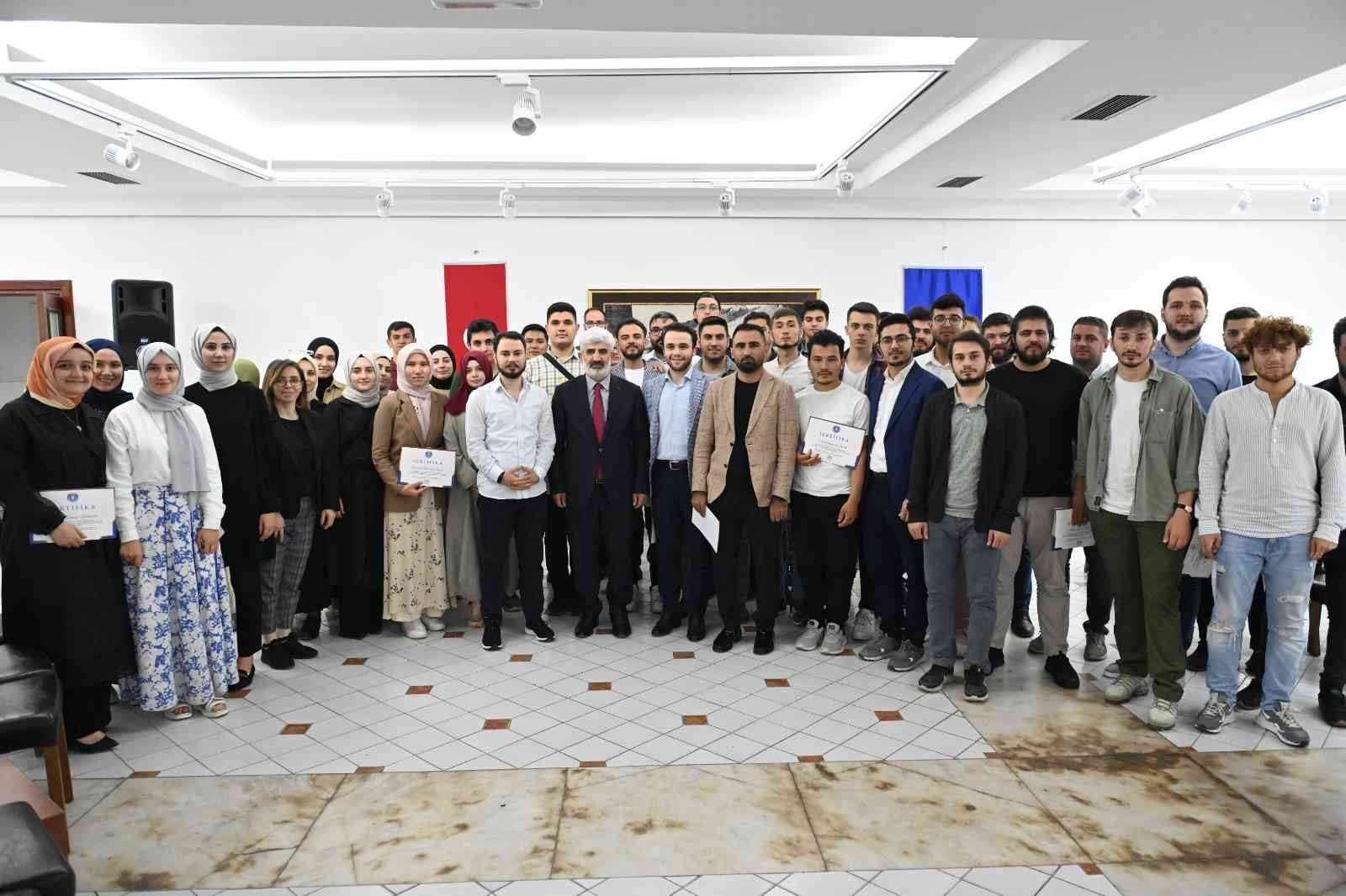 GENAR Araştırma Başkanı İhsan Aktaş da toplumların hayatlarını tefekkürün sürüklediğini söyledi. Gerçekleşen eğitimlerle gençlerin kendi tarihini, medeniyetini ve dünyayı dengeli bir biçimde tanıma fırsatı bulduklarını ifade eden İhsan Aktaş, “Genel olarak toplumların hayatını tefekkür sürüklüyor. Bir yerde fikriniz varsa aslında kimliğiniz var demektir. Dünyada batı medeniyetine karşı bazı tavırlar oldu. Bazı devletler ya da kişiler kökten karşı durdular, bazılarıysa teslim oldu. Osmanlı’dan bugüne kadar Türkiye hem bu medeniyetin içerisinde yaşadı hem birlikte hareket etti hem de kendi kimliğini muhafaza etmeye çalıştı. Yavaş yavaş batı medeniyetinin aslında insanlığa çok da bir şey getirmediği görüldü. Kendi medeniyetimize dair öz değerlerin tekrar keşfedildiği döneme geldi. Biz radikalleşmeden, hırçınlaşmadan bu dünyaya değer biçme ve üretme kabiliyetine sahip tek milletiz. Tek kültüre ve tek tarihe sahibiz. Onun için bu bilinçle özgüvenli olmamız lazım. İşte bu da bize tembellik yerine, daha çok okuma, daha çok tefekkür, daha çok olgunluk ve erdeme dair şeyler sağlıyor. Mesleği ne olursa olsun, kişi bilgilendikçe, müzakere yeteneği geliştikçe topluma daha faydalı insanlar oluyor. Örnek bir iş oldu. Umarım bu gayretiniz hayat boyu devam eder” ifadelerini kullandı.