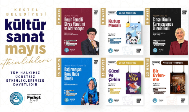 Kestel Belediyesi Muhsin Yazıcıoğlu Kültür Merkezi ve Ek Bina Kültür Merkezi’nde düzenlenecek etkinlikler, ay boyunca farklı yaş gruplarına hitap edecek şekilde planlandı.Mayıs Ayı Etkinlik Takvimi