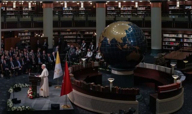 Cumhurbaşkanı Recep Tayyip Erdoğan, Papa 14. Leo’yu Ankara’da resmi törenle karşıladı. Heyetler arası görüşmelerin ardından iki lider, Cumhurbaşkanlığı Millet Kütüphanesi Cihannüma Salonu’nda düzenlenen Sivil Toplum ve Diplomatik Heyet Toplantısı’na katıldı.