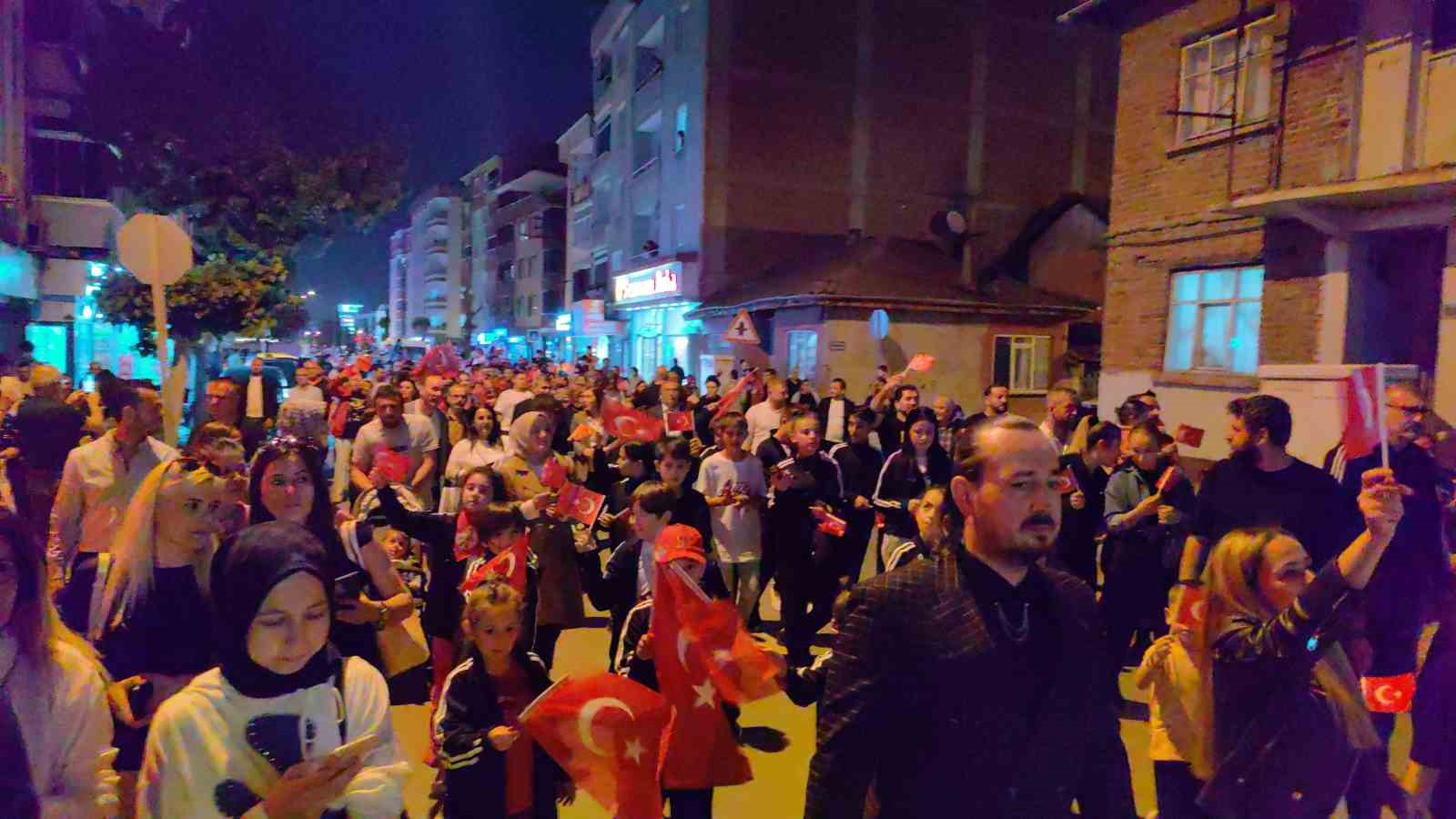 Şebboy Caddesi’ndeki apartmanlarda ikamet eden vatandaşlar, kortej yürüyüşü düzenledi. Yüzlerce vatandaşın katıldığı kortej, bando takımı öncülüğünde yürüdüler. Meşaleler eşliğinde yürüyen vatandaşlar, bayramı coşkuyla kutladılar.