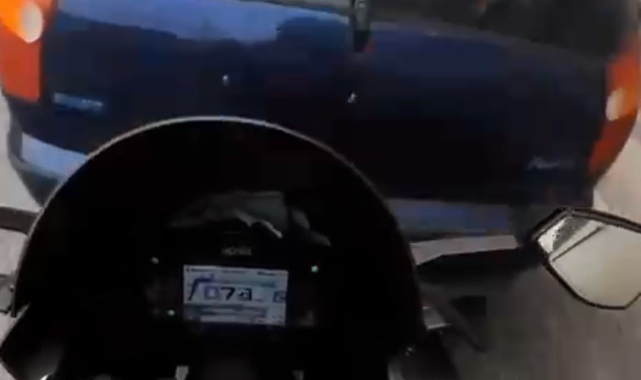 Olay, merkez Osmangazi ilçesinde yaşandı. Edinilen bilgiye göre, motosiklet sürücüsü ana yolda ilerlediği sırada, yan şeritteki otomobil bir anda önüne kırdı. Fren yapmakta geciken motosikletli, otomobile çarptı. Çarpmanın etkisiyle motosikletli yere savrulurken, kazayı hafif sıyrıklarla atlattı. Kask kamerasına yansıyan görüntülerde, otomobilin ani manevrası ve çarpışma anı net bir şekilde görülüyor.
