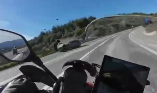Bursa'nın İznik ilçesi ile Sakarya Pamukova arasındaki karayolunda hatalı sollama yapan motosiklet sürücüsü otomobille çarpıştı. 59 yaşındaki motosiklet sürücüsü hayatını kaybederken, kaza anı başka bir motosikletin kask kamerasına saniye saniye yansıdı.