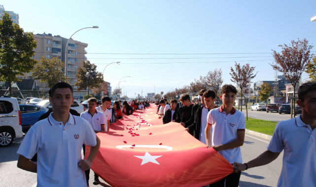 Bursa'da yüzlerce öğrenci 500 metrelik dev bayraklı kortej yapıp teröre lanet, yaşasın Cumhuriyet yürüyüşü gerçekleştirdi.
