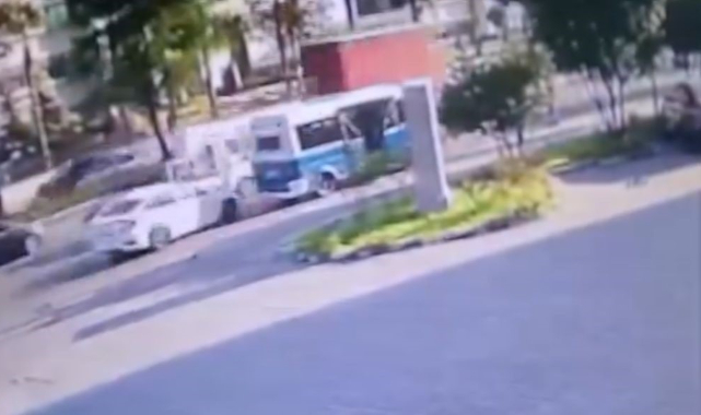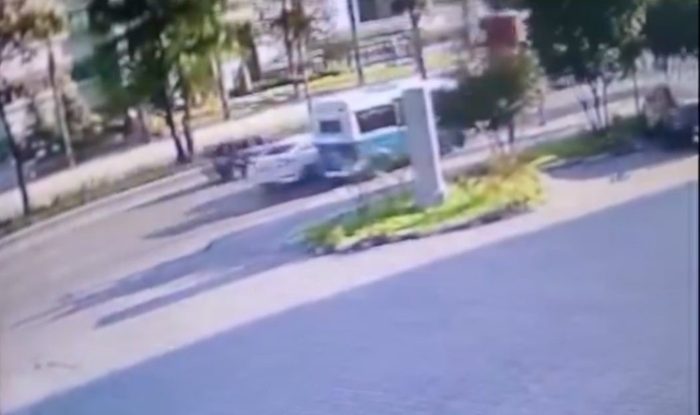 Önce yolcu alan minibüse arıdan kamyonete böyle çarptı