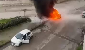 Bursa'da dün öğle saatlerinde park halindeki bir otomobil yanmaya başladı ve kısa sürede alev topuna döndü.