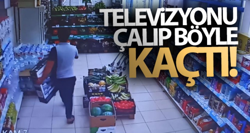 Market çalışanları da hırsızın peşinden koştu. Bu sırada kaçamayacağını anlayan şüpheli, elinde televizyonu sokak ortasına bırakarak uzaklaştı. Şüphelinin televizyonu çaldığı anlar ise marketin güvenlik kamerası tarafından görüntülendi.