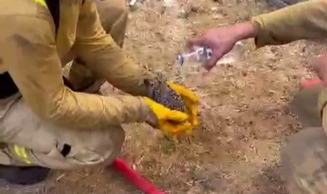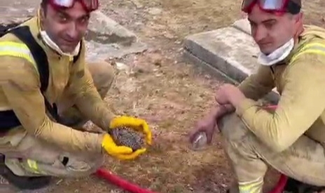Çanakkale’de Merkez ve Bayramiç ilçelerinde öğle saatlerinde başlayan yangınlara müdahale devam ediyor. Orman yangınlarından hayvanlar da olumsuz etkileniyor. Merkez ilçeye bağlı Sarıcaeli köyünde orman işçileri yangından etkilenen bir kirpiyi kurtardı. Dumandan ve sıcak havadan etkilenen kirpiye orman işçileri su içirerek serinletti.