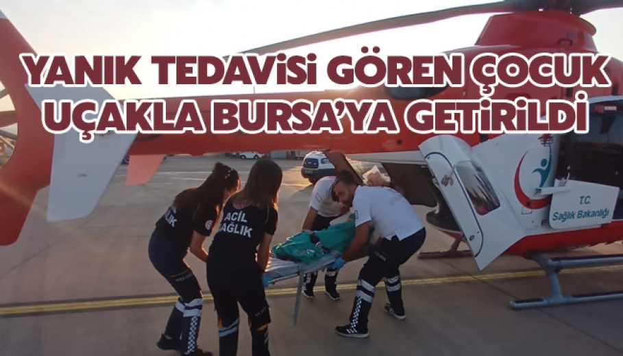 Yanık tedavisi gören çocuk ambulans uçakla Bursa'ya getirildi